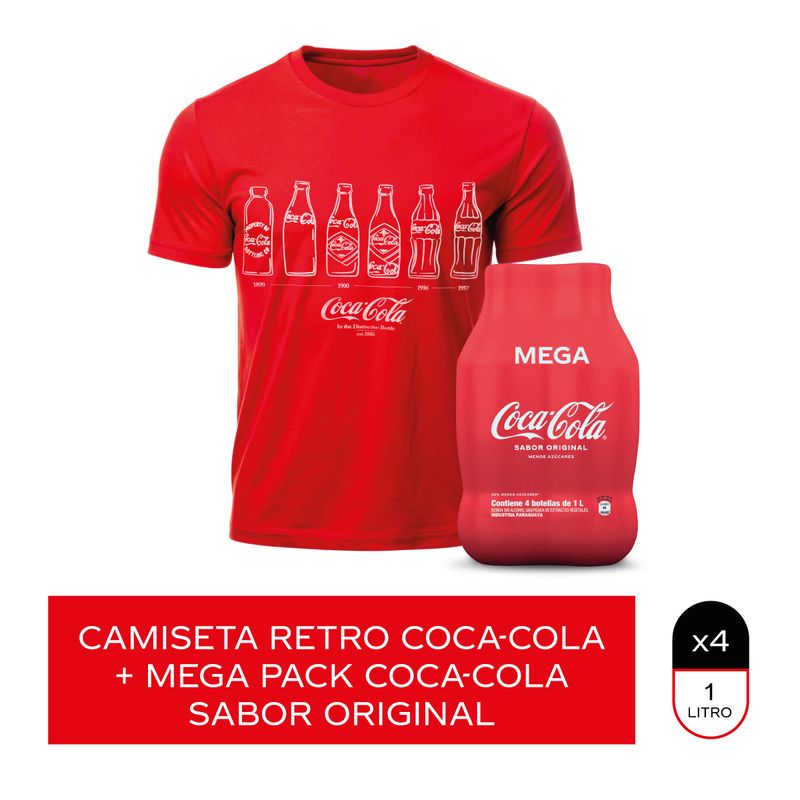 Combo Coca-Cola sabor original 1L x4 + Camiseta retro