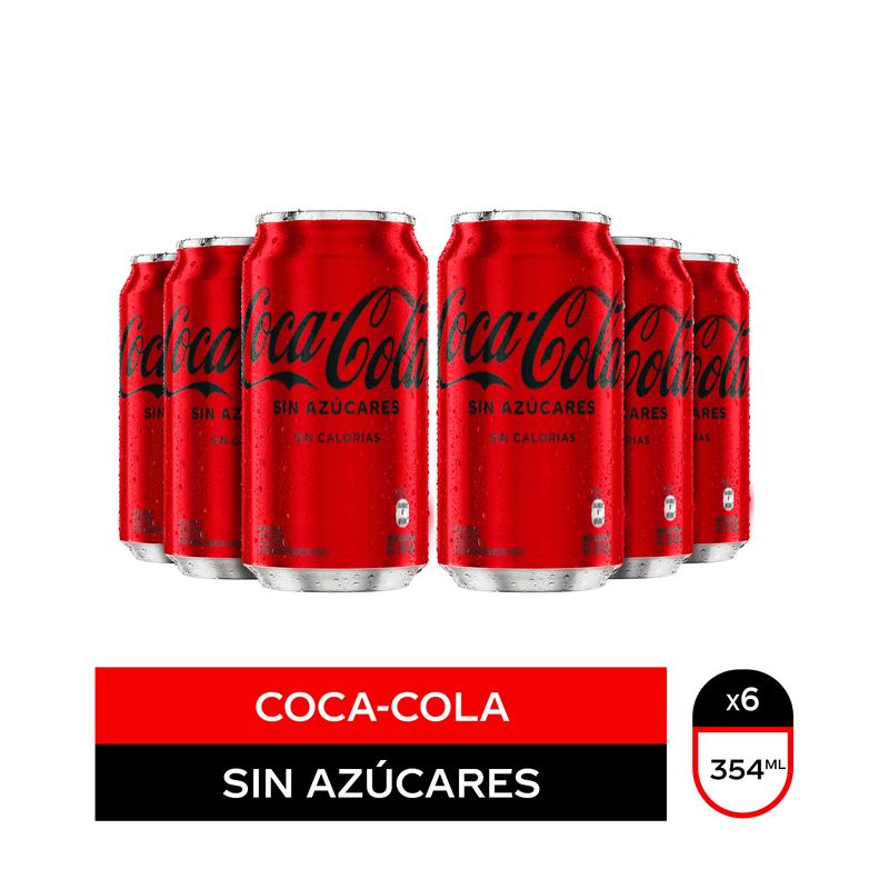 Pack Coca-Cola sin azúcar lata descartable 354 ml x 6