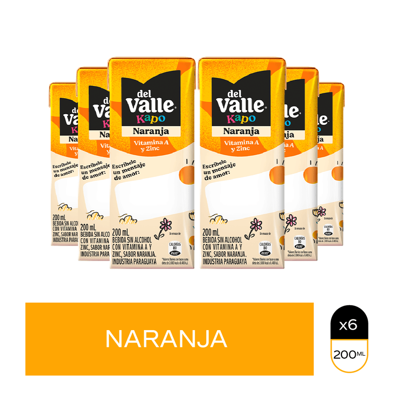 Pack del Valle Kapo naranja 200 ml x 6